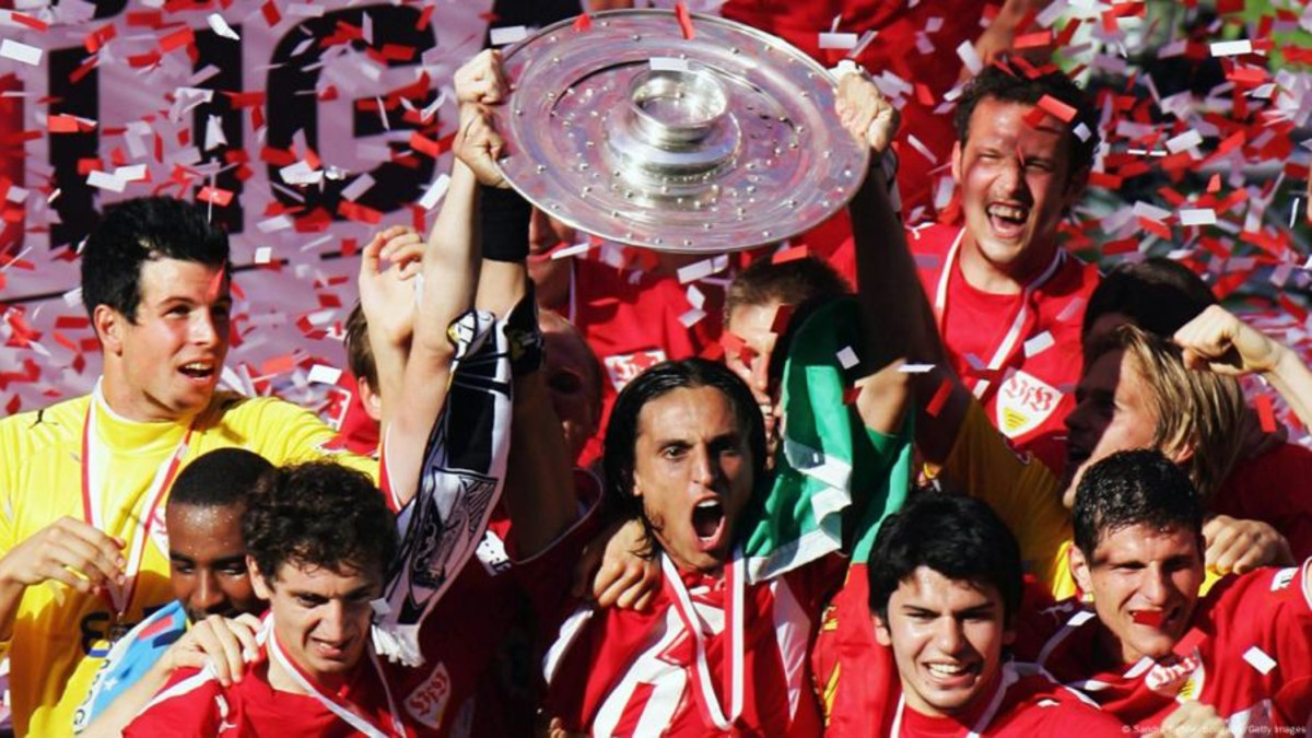 Stuttgart began the season as the youngest team in the league but ended up as champions under the guidance of Armin Veh, who had taken over from Giovanni Trapattoni in the previous campaign. Felix Magath, who had achieved back-to-back doubles at Bayern Munich, faced a more challenging third season and was dismissed at the end of January. He was replaced by Ottmar Hitzfeld. Bayern finished fourth, their worst position since 1994. Borussia Monchengladbach had a difficult season, finishing 11 points from safety, while Alemannia Aachen and Jurgen Klopp's Mainz were also relegated. Jupp Heynckes was appointed head coach of Borussia Monchengladbach before the start of the 2006-07 season but was sacked in January. Dutchman Jos Luhukay replaced him but could not prevent the team from being relegated. Bayern Munich coach Felix Magath made significant signings, including Lukas Podolski, Daniel van Buyten, and Marc van Bommel. However, inconsistent performances led to Magath being replaced by Hitzfeld. Werder Bremen made notable signings, including Diego and Per Mertesacker, while Hamburg signed Vincent Kompany and Ivica Olic. Sebastian Diessling moved from Nurnberg to Bayer Leverkusen, and Dimitar Berbatov joined Tottenham from Bayer Leverkusen. Mario Gomez was named Bundesliga Player of the Year, and Armin Veh was recognized as Manager of the Season. The top goalscorer was Theofanis Gekas with 20 goals. The key moment of the season was Stuttgart's victory over Bochum, which helped them move ahead of Schalke in the table and ultimately clinch the title with a win over Energie Cottbus in the final game.